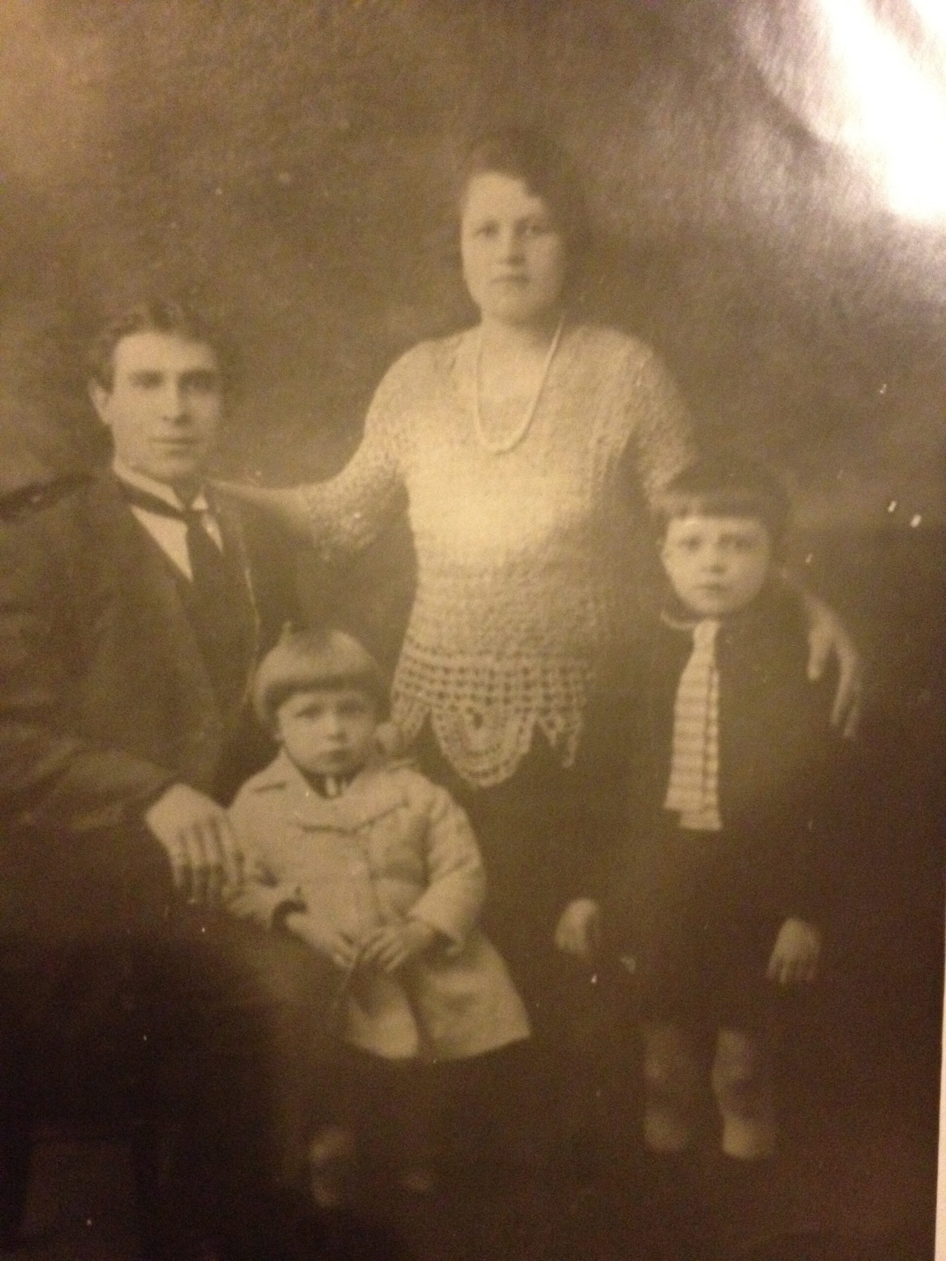 The Smilgjus family (circa 1922): Clockwise, Ipolitas (seated), Julijona, possibly Felix, and possibly Constantinas. Photo courtesy of Emma Smith.